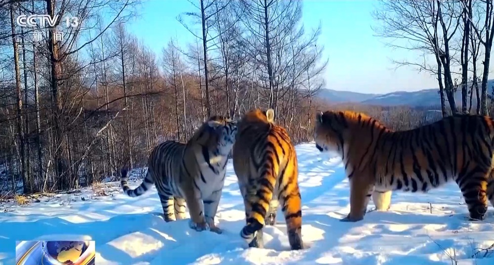 今年,在东北虎豹国家公园的珲春片区,一虎带四崽、一虎带五崽的罕见影像多次被拍摄到。